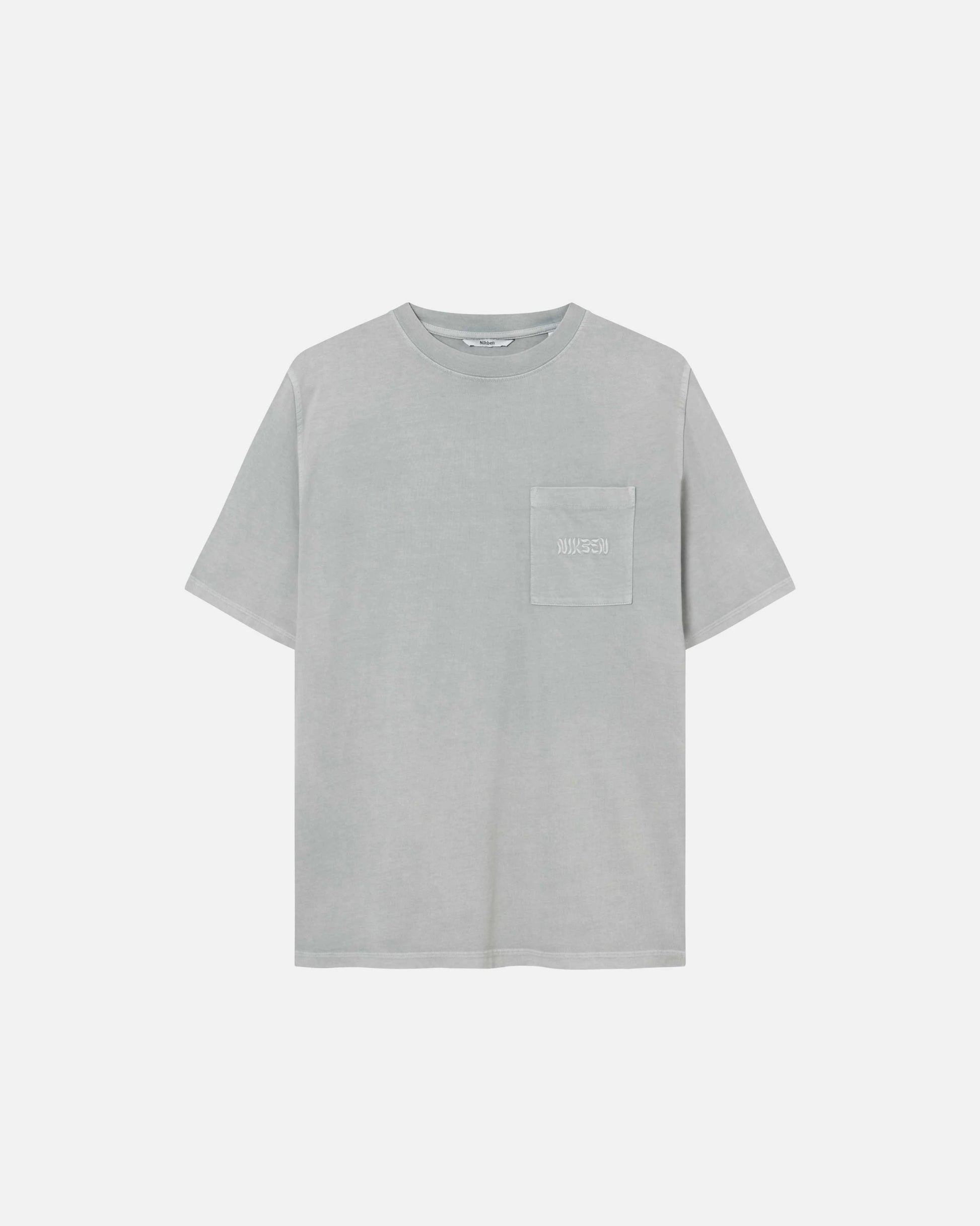 Over Dyed Tee is made from 100% organic cotton. This washed grey tee offers a relaxed boxy cut with tonal stitchings and an embroidered tone on tone "Nikben" logo on the chest pocket.